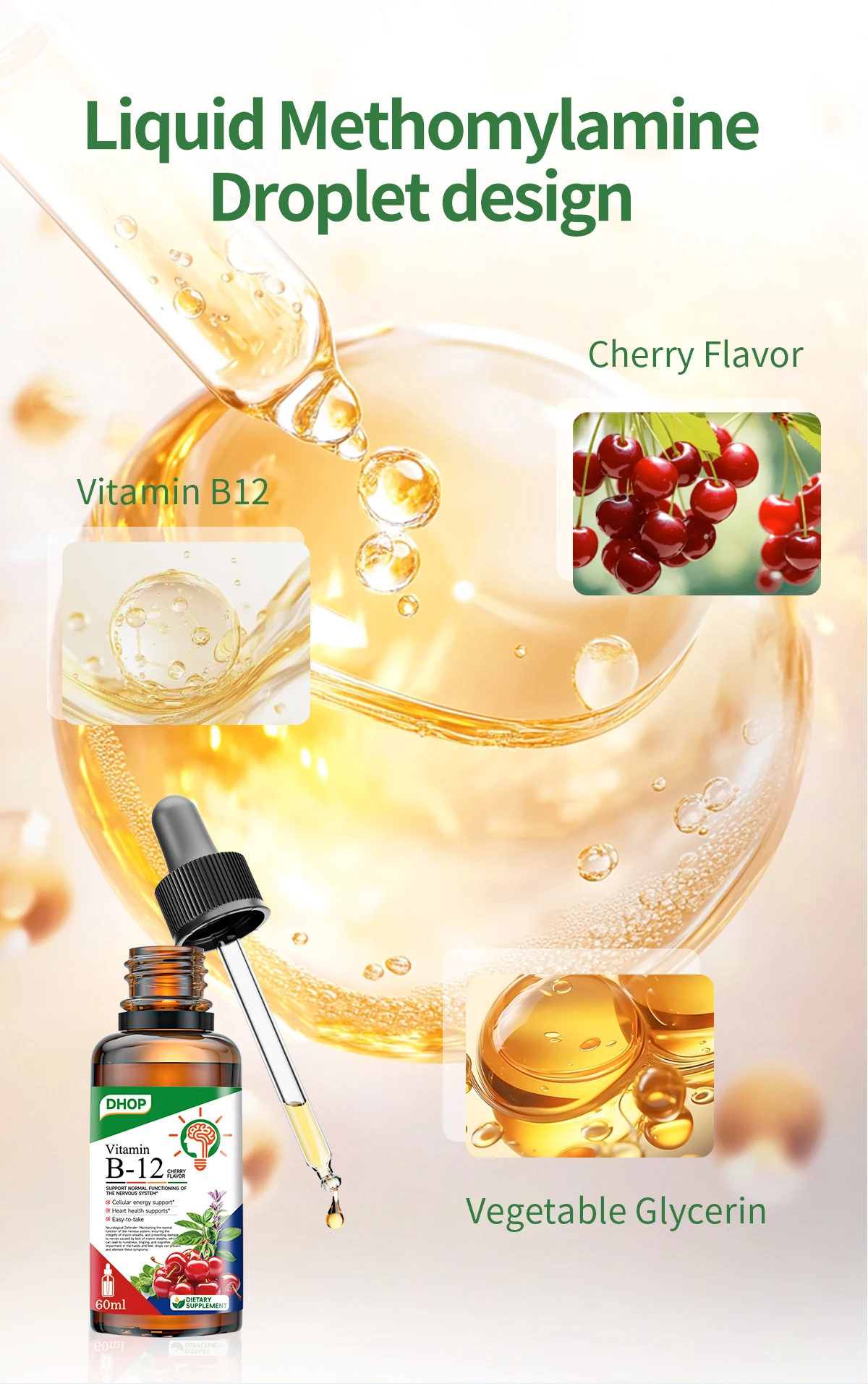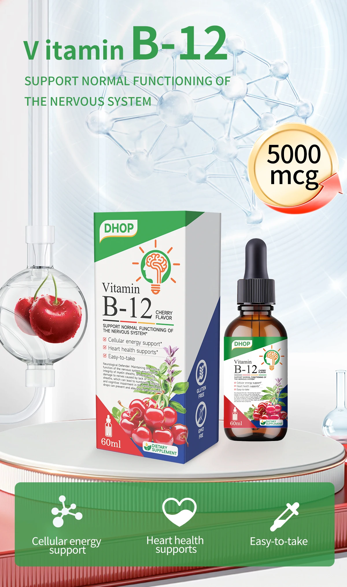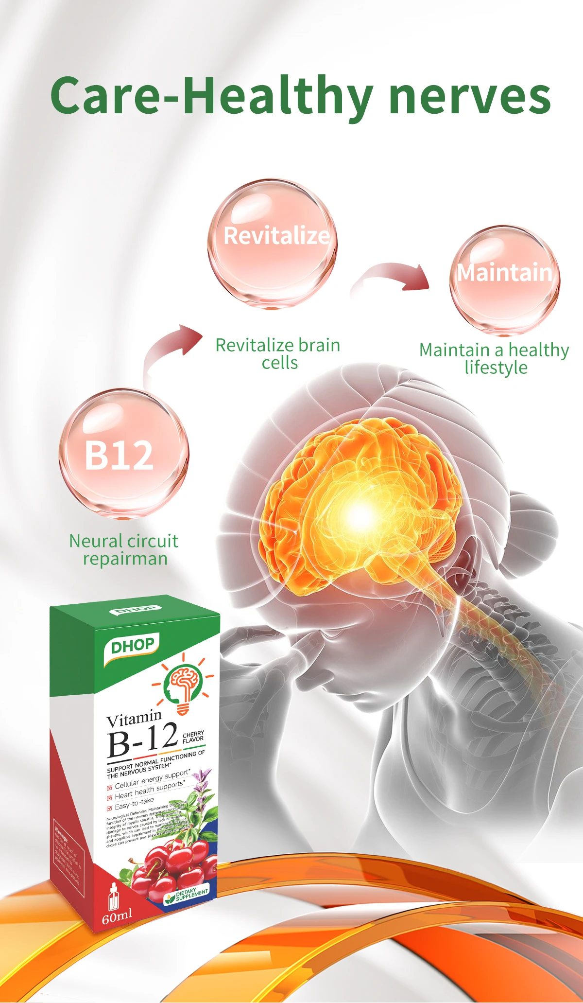 DHOP Vitamin B12 500mcg 60ml Liquid Healthcare Supplement Fast Absorption Energy Booster Vitamin Drop Herbal Supplements