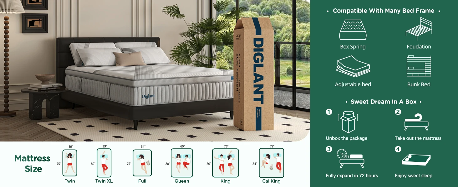 TWIN XL, FULL, QUEEN, KING, CAL KING |