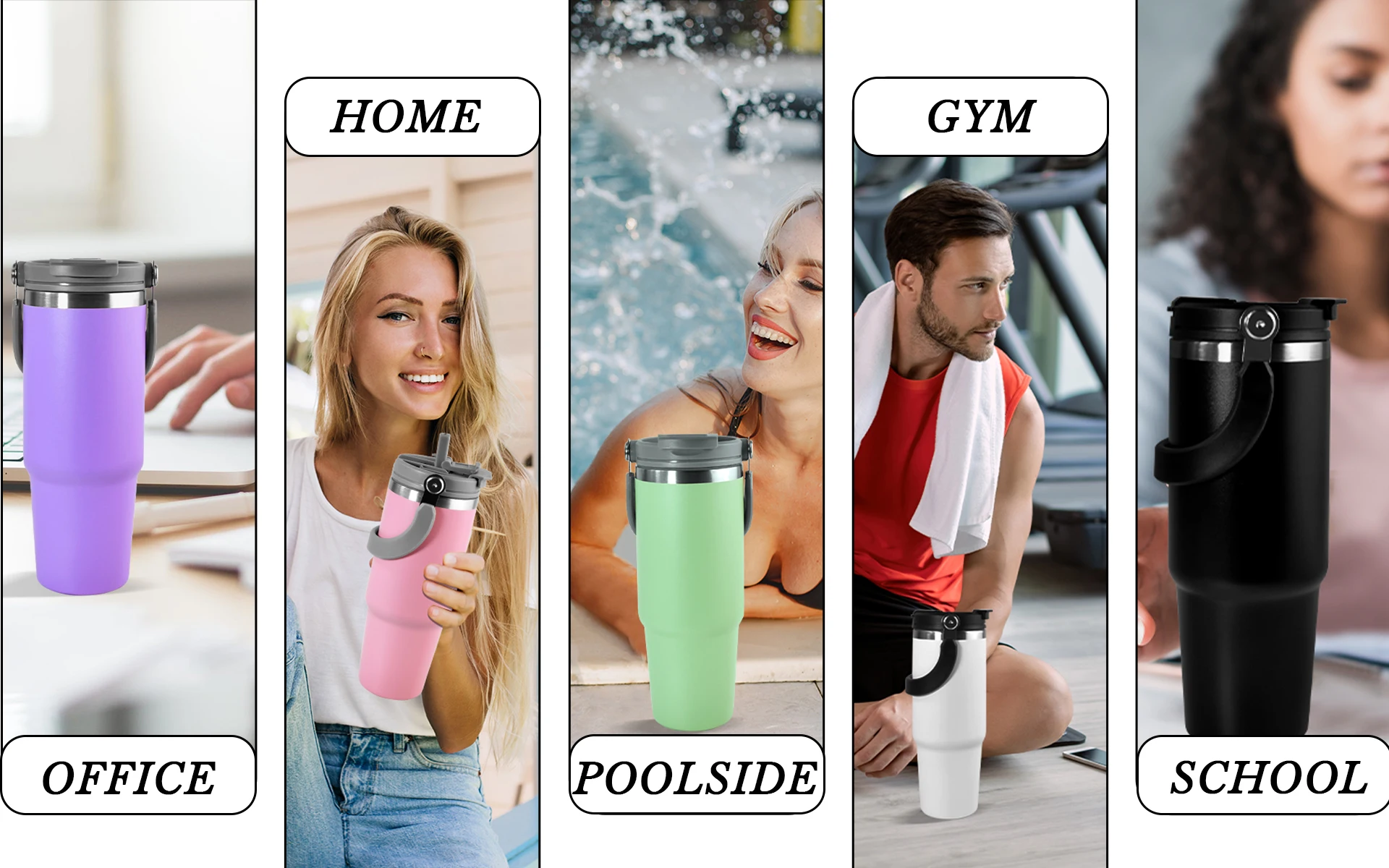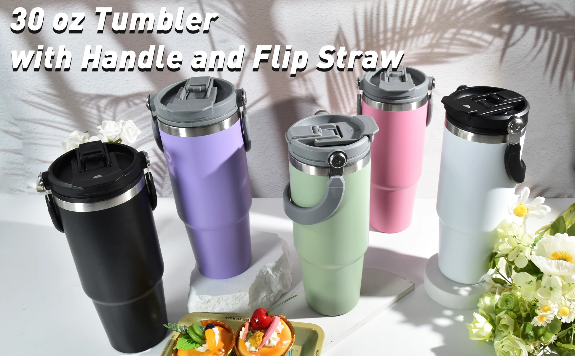 High Quality 20oz 30oz Stainless Steel Tumbler Flip Top Straw Handle Original Vacuum Insulated Tumbler with Straw